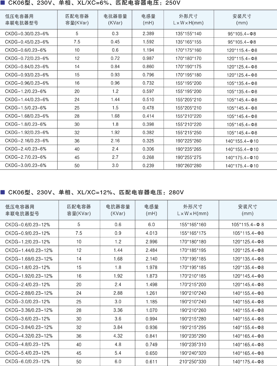 CKDG、CKSG系列低壓串聯(lián)電抗器里面通過的是交流電,它的作用是與功率因數(shù)補(bǔ)償電容器并聯(lián),對穩(wěn)態(tài)性諧波(5、7、11、13次)構(gòu)成串聯(lián)諧振。通常有電抗率 4.5-6%電抗器,對5次諧波通常電抗率為6%屬于高感值電抗器,對3次諧波通常電抗率為12~13%,對2次諧波通常電抗率為26~27%屬于高 感值電抗器。 接入串聯(lián)電抗器,能有效地吸收電網(wǎng)諧波,改善系統(tǒng)的電壓波形,提高系統(tǒng)的功率因數(shù),并能有效地抑制合閘涌流及操作過電壓, 有效地保護(hù)了電容器。