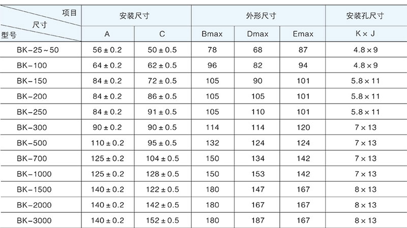 BK系列控制變壓器(以下簡稱變壓器)適用50-60Hz電壓至500V的電路中,通常用作控制電器或局部照明燈及指示燈的電源之用。BK變壓器結(jié)構(gòu)可分為殼式。按安裝方式可分為立式。 BK系列控制變壓器是經(jīng)過多年進一步吸收國內(nèi)外同類產(chǎn)品的優(yōu)點,采用先進工藝和嚴謹設(shè)計進行制造,并優(yōu)選國外先進方法的接線端子,具有性能優(yōu)良、工作可靠、耗能低、體積小、接線安全、防護等級高、適用性廣等特點。在額定負載下能長期工作,是一種理想的變壓電源。
