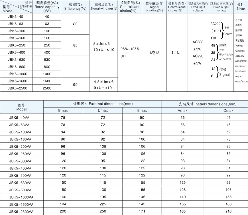 JBK5系列機(jī)床控制變壓器適用于交流50~60HZ,輸入電壓不超過500V,輸出額定電壓不超過220V,作為各行各業(yè)的機(jī)械設(shè)備,一般電器控制電源和工作、信號燈的電源之用。